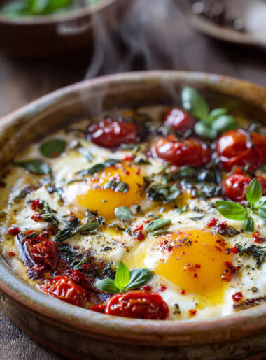 Imagine cracking into a sizzling, golden dish of baked feta eggs—creamy, tangy feta melding with runny yolks, all nestled in …